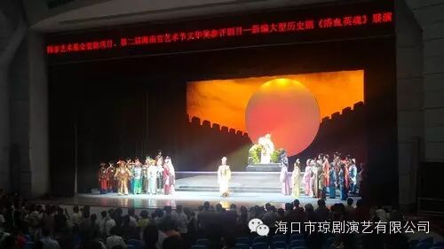 2015年9月19日晚上8:00,國家藝術基金2014年度舞臺藝術創作資助項目、第二屆海南省藝術節文華獎參評劇目——新編大型歷史劇《浴血英魂》在?谑腥舜髸贸晒φ寡。演出過程中,在臺上的演員激情澎湃,熱情高漲,個個都使出了看家本領演繹自己的角色,并全心全意投入到戲劇的情景之中,唱腔嘹亮出色,感情非常地充沛,給觀眾呈現出了一出激動、感人的戲曲。據現場的觀眾反應,此次《浴血英魂》的演出,和首演時的情況相比較,進步很大,尤其是演員的狀態都表現得很好,整部戲的感情跌宕起伏,和觀眾產生了共鳴,有些觀眾為該劇主人公袁崇煥的遭遇流下了眼淚。然而,臺前的精彩演繹也讓我們臺后的演職人員們忙活了不少,付出了許許多多,演員們唱沙啞了嗓子、樂手們磨舊了琴弦、燈光音響師們疲憊了雙眼、舞美人員濕透了衣服....但是再辛苦都很值得,我們的努力只為一個目標,那就是爭取在第二屆海南省藝術節文華獎項中取的好成績。下面,讓我們一起欣賞該劇的演出情況和優美唱詞吧!