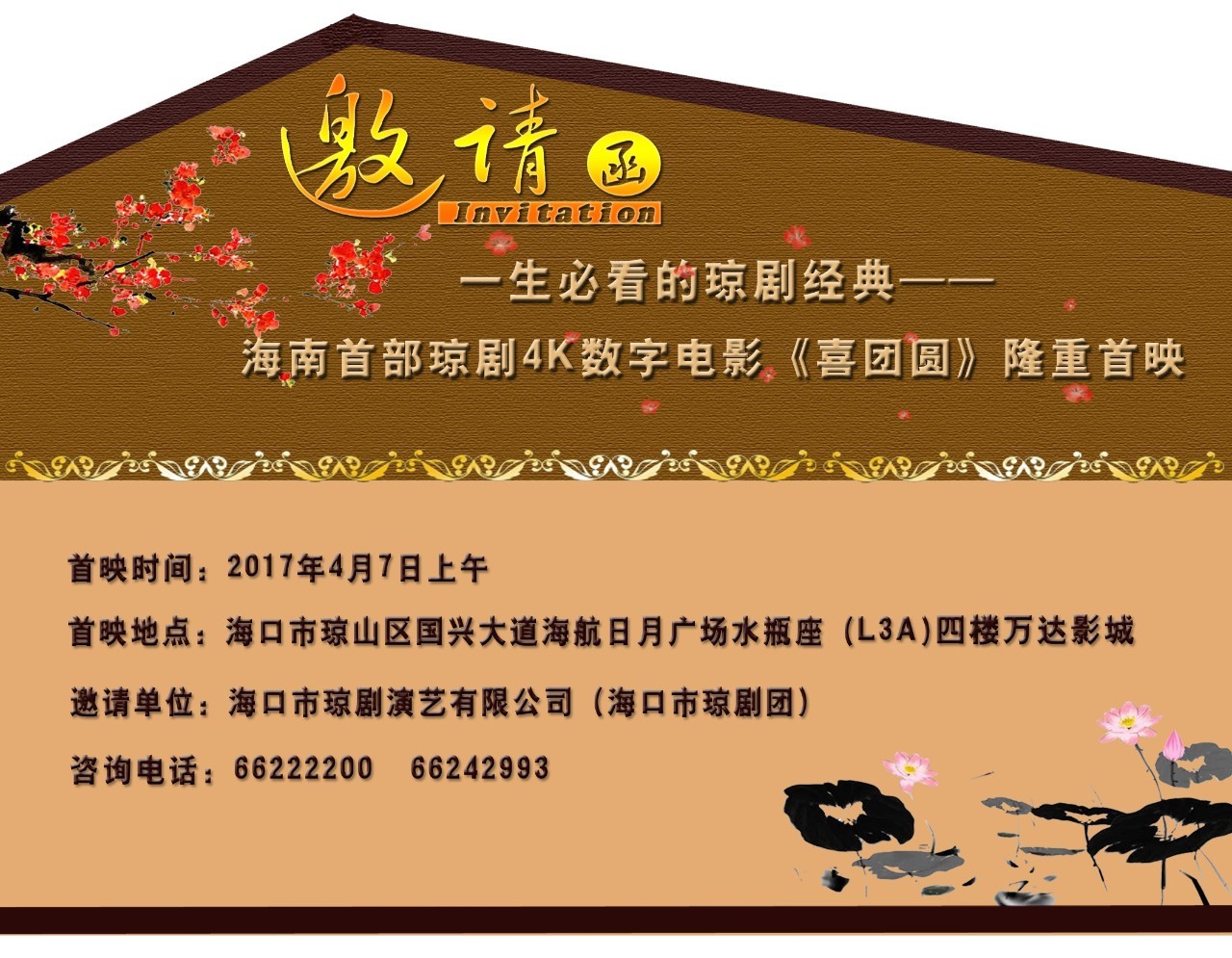 海口市瓊劇演藝有限公司誠摯邀請您參加