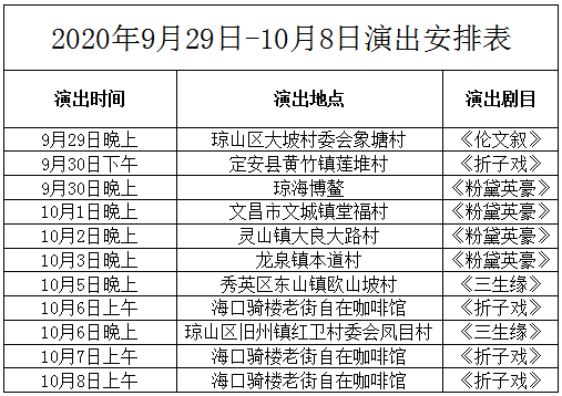 我們國慶中秋節假日期間不打烊,本劇團國家二級演員吳敘勇、優秀青年演員陳彩玉、阮丹青、俞秋蕊、劉瑋瑋等知名演員陪您共度佳節,給您及家人傳送暖心暖意精彩瓊劇。
