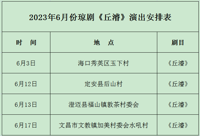 這是一堂扣人心弦的廉政教育大課!這是一曲震撼寰宇的文化自信強音!這是一場品讀先賢詩歌的瓊劇盛宴!劇中攫取丘濬從趕考至壽終的四十多年人生歷程中的幾個切口加以提煉,把立主腦、密針線、減頭緒、審虛實貫穿始終,使之戲劇張力更強,藝術品位更高,海南韻味更濃。以下是瓊劇《丘濬》本月演出安排表,敬請關注。