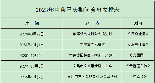 接下來(lái)在中秋國(guó)慶期間,海口市瓊劇演藝有限公司繼續(xù)為大家獻(xiàn)上精彩好戲,邀約大家月下賞瓊劇,共度美好時(shí)光。具體演出安排如下: